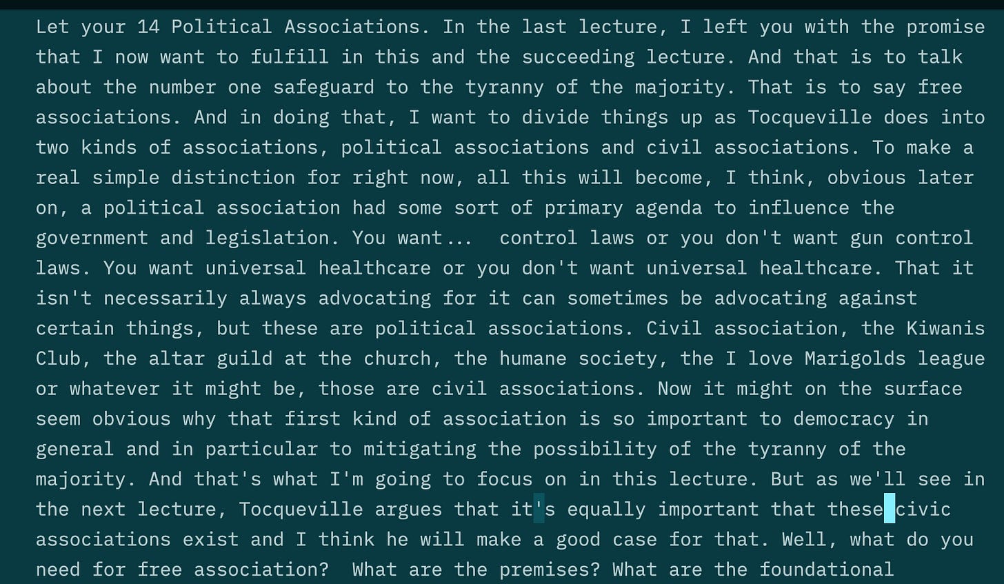 I purchase my courses from the Great Courses website, then run them through Whisper once I get the mp3s. (At the bottom of this post I’ll share some of the courses I’ve studied with these tools.)